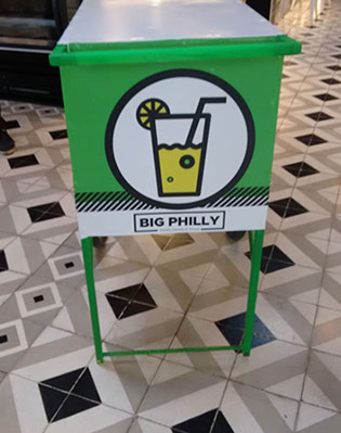 Aplicación de vinil sobre carrito de limonadas.
